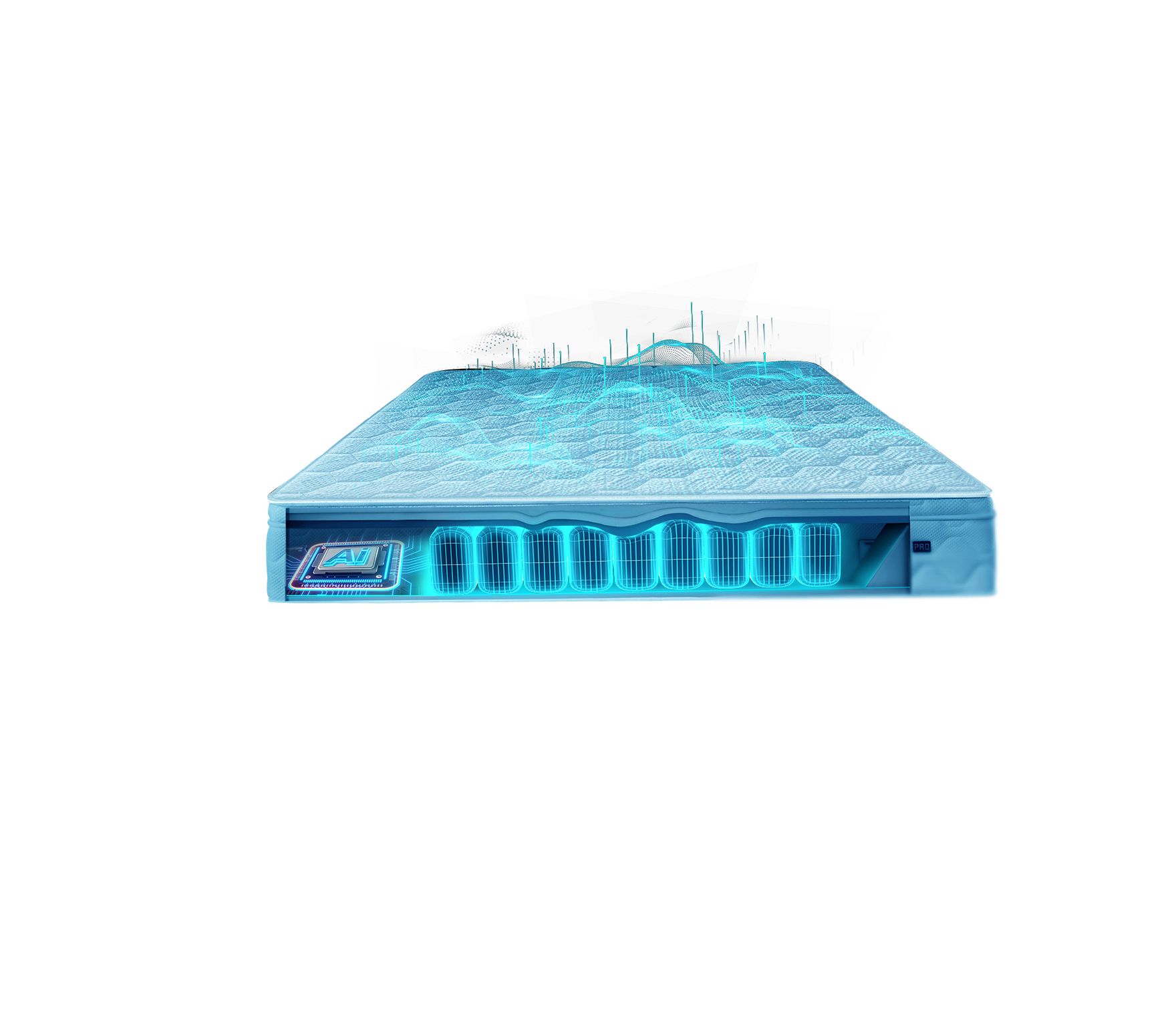 床垫内置睡眠探测器,采用非接触式睡眠检测技术及心肺耦合技术,